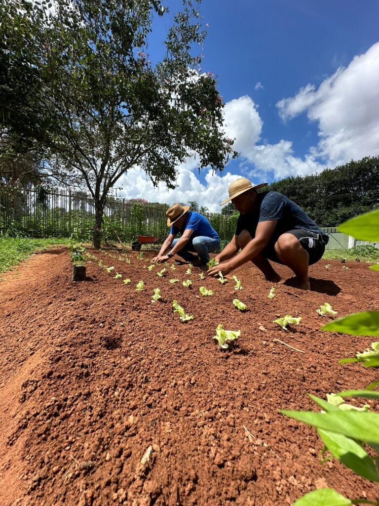 O Instituto Terra e Trabalho (ITT) implementou, desde o ano passado uma horta comunitária após uma análise estruturada do solo para avaliar sua fertilidade e determinar a necessidade de correções, como a aplicação de calcário para ajustar o pH do solo e garantir a absorção adequada de nutrientes pelas plantas. Com base nos resultados da análise de solo, foi feita uma recomendação de adubação e os plantios foram realizados após 50 a 60 dias, seguindo o cronograma estabelecido.
