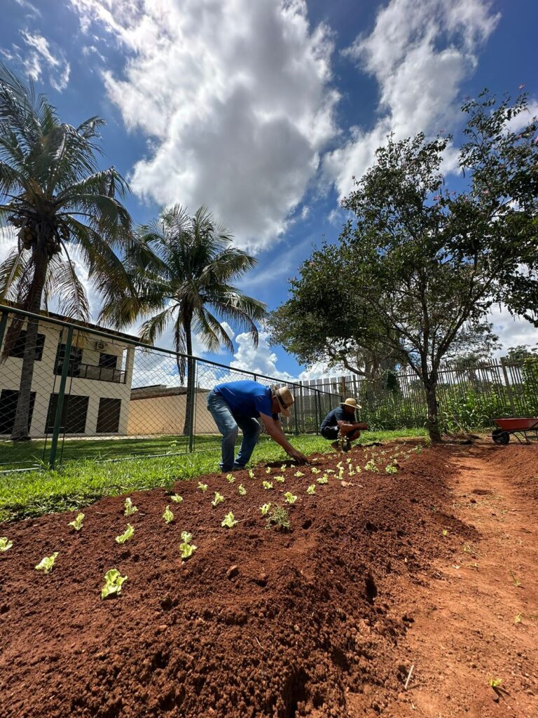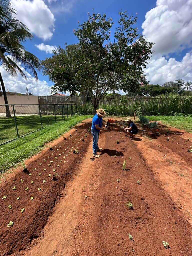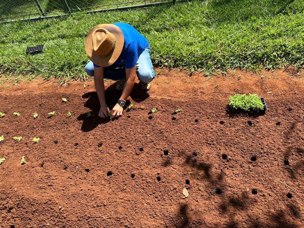 Ontem, no Instituto Terra e Trabalho, foram plantados, alface e rúcula, vegetais de folhas que se beneficiam de uma exposição mais controlada ao sol no primeiro canteiro. O segundo canteiro foi reservado para os tomates, devido à sua necessidade de espaço e luz para crescer e se espalhar. Já no terceiro canteiro, optou-se por culturas como brócolis, couve e quiabo, que requerem menos espaço lateral e se desenvolvem bem em condições mais compactas, garantindo uma diversidade de vegetais saudáveis e frescos.